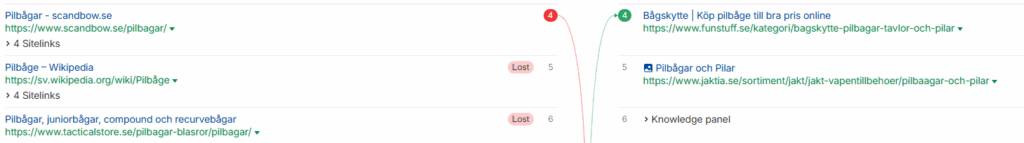 Sökordet “Pilbåge” har gått från position 17 till position 4