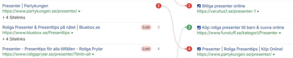 Sökordet “Roliga presenter” har gått från position 27 till position 3