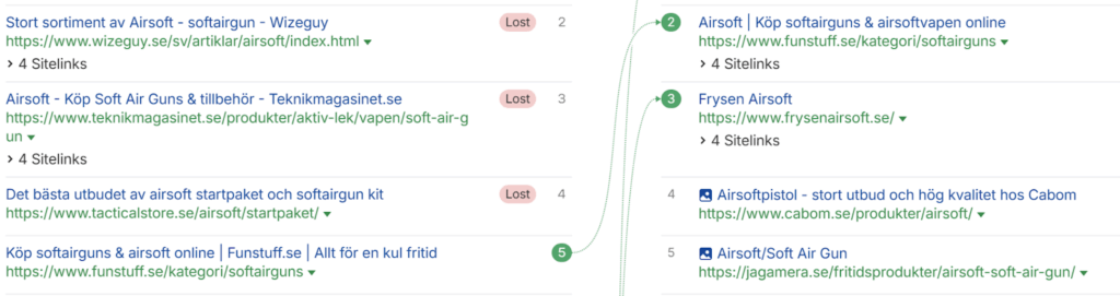 Sökordet “Soft air gun” har gått från position 5 till position 2