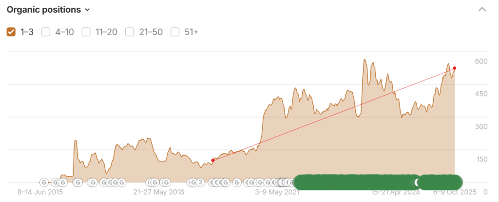 Antalet Topp 3-placeringar har mer än femdubblats sedan start, från 96 till 523 sökord